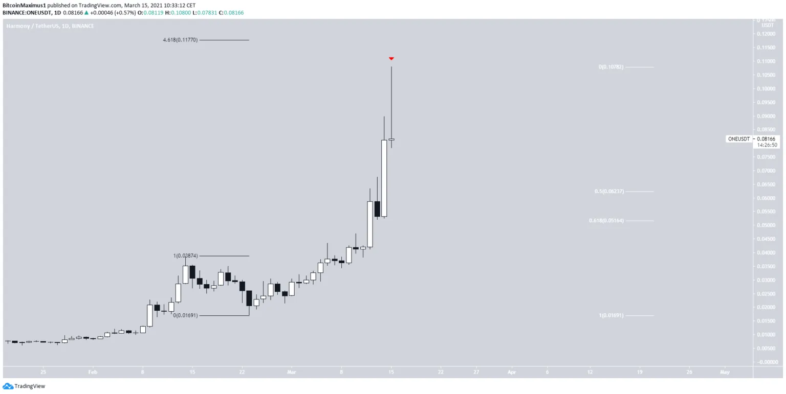 A Harmony (ONE) atingiu um novo preço máximo de US$ 0.108 em 15 de março. No entanto, o ativo criou um pavio superior muito longo e está potencialmente fazendo um fechamento de baixa. Isso poderia criar um candle de estrela cadente — um sinal comum de reversão de baixa.