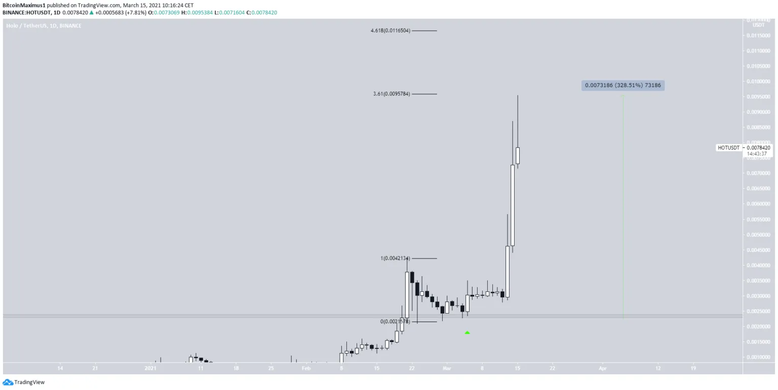 Holo (HOT) tem crescido rapidamente desde que transformou a resistência máxima anterior em suporte no dia 5 de março.