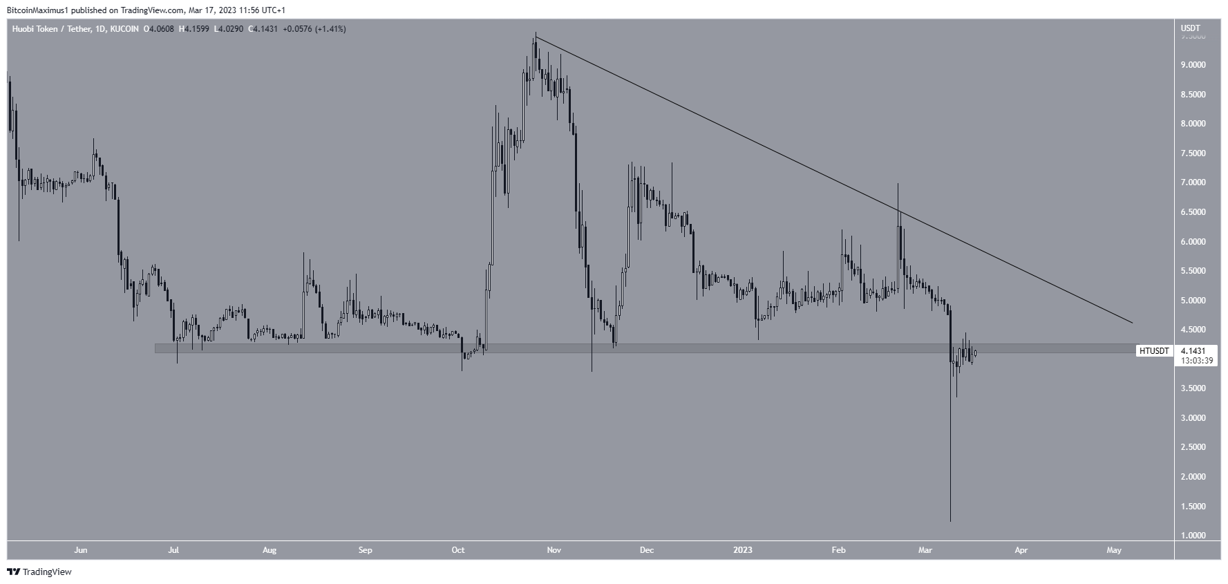 Se for bem-sucedido, poderá ocorrer uma queda para US$ 1,50. Por outro lado, se o preço do HT recuperar a área de US$ 4,20, poderá subir para a linha de tendência de baixa em US$ 5,25.