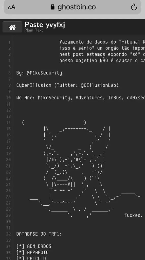Hackers alegam terem roubado processos provenientes de duas bases de dados do Tribunal Regional Federal da Primeira Região (TRF-1).