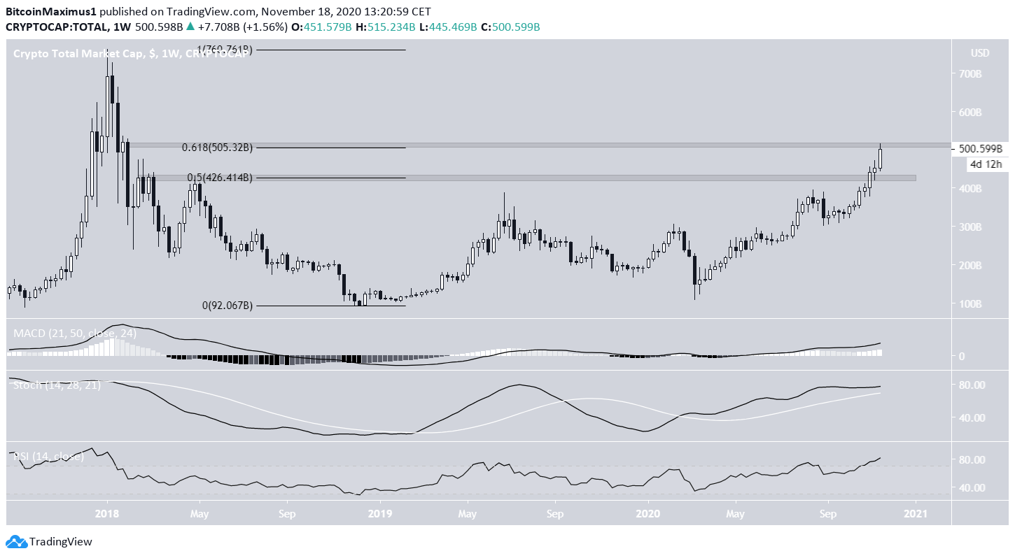 No momento em que este artigo foi escrito, a capitalização estava sendo negociada no nível de retração de Fibo de 0,618 em US $ 505 bilhões.