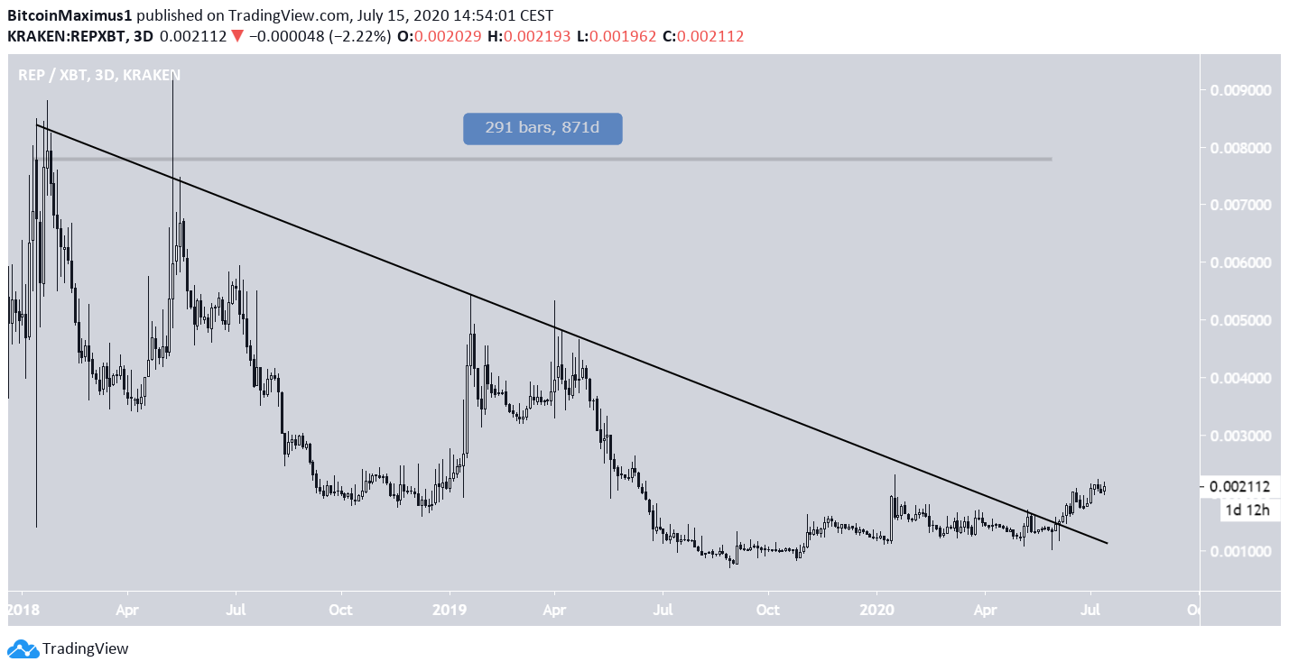 No início de junho, o preço da Augur (REP) rompeu em uma linha de resistência descendente que estava em vigor há quase 900 dias.