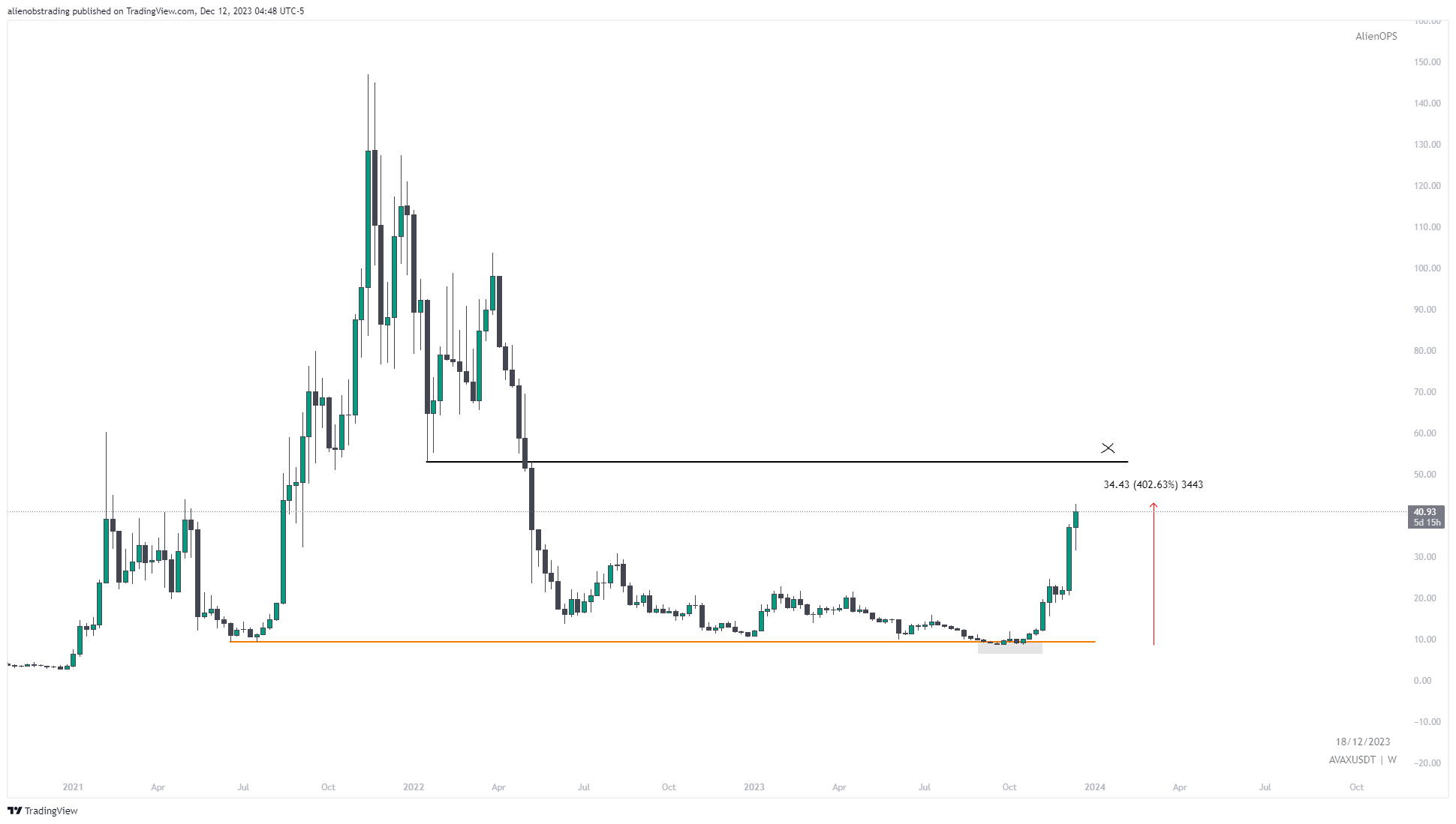 Com isso, a AVAX está se aproximando do nível de US$ 50, que não é alcançado desde maio de 2022.