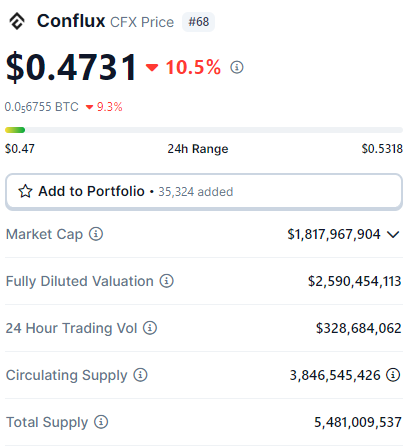 Em direção contrária à Mantle está a Conflux. A altcoin tem tido o pior desempenho geral do mercado, com seu preço caindo 10,5% no dia de hoje.