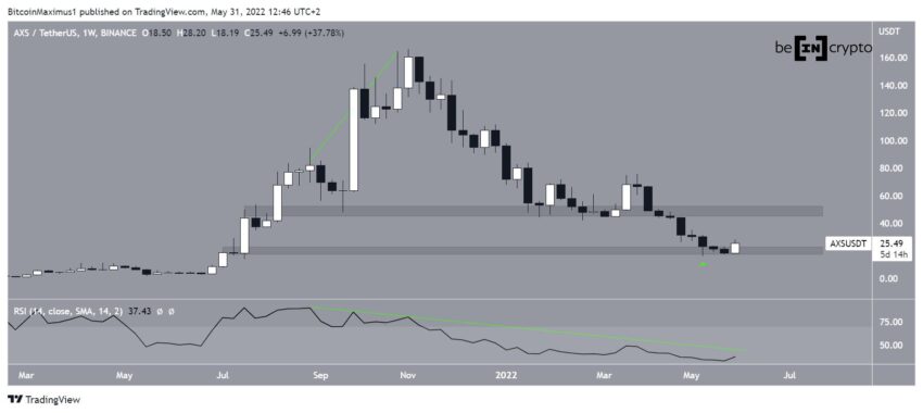 O AXS estava em tendência de baixa desde que atingiu o preço recorde de US$ 166,09 em novembro de 2021. Esse movimento até agora levou a uma mínima de US$ 16,20 em maio.