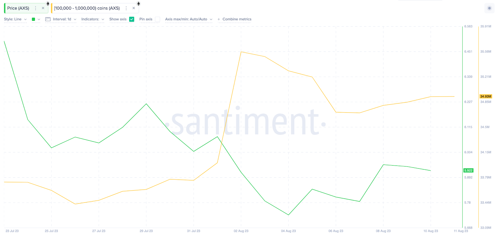 Entre 26 de julho e 11 de agosto, esse grupo de baleias adicionou 1,51 milhão de AXS aos saldos de suas carteiras.