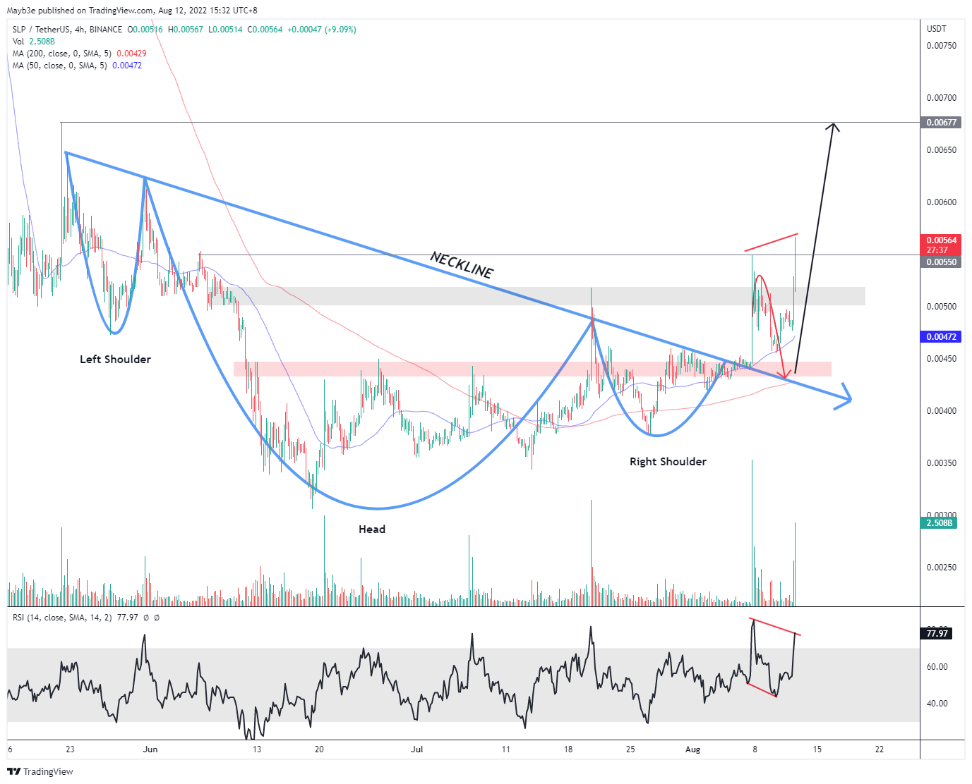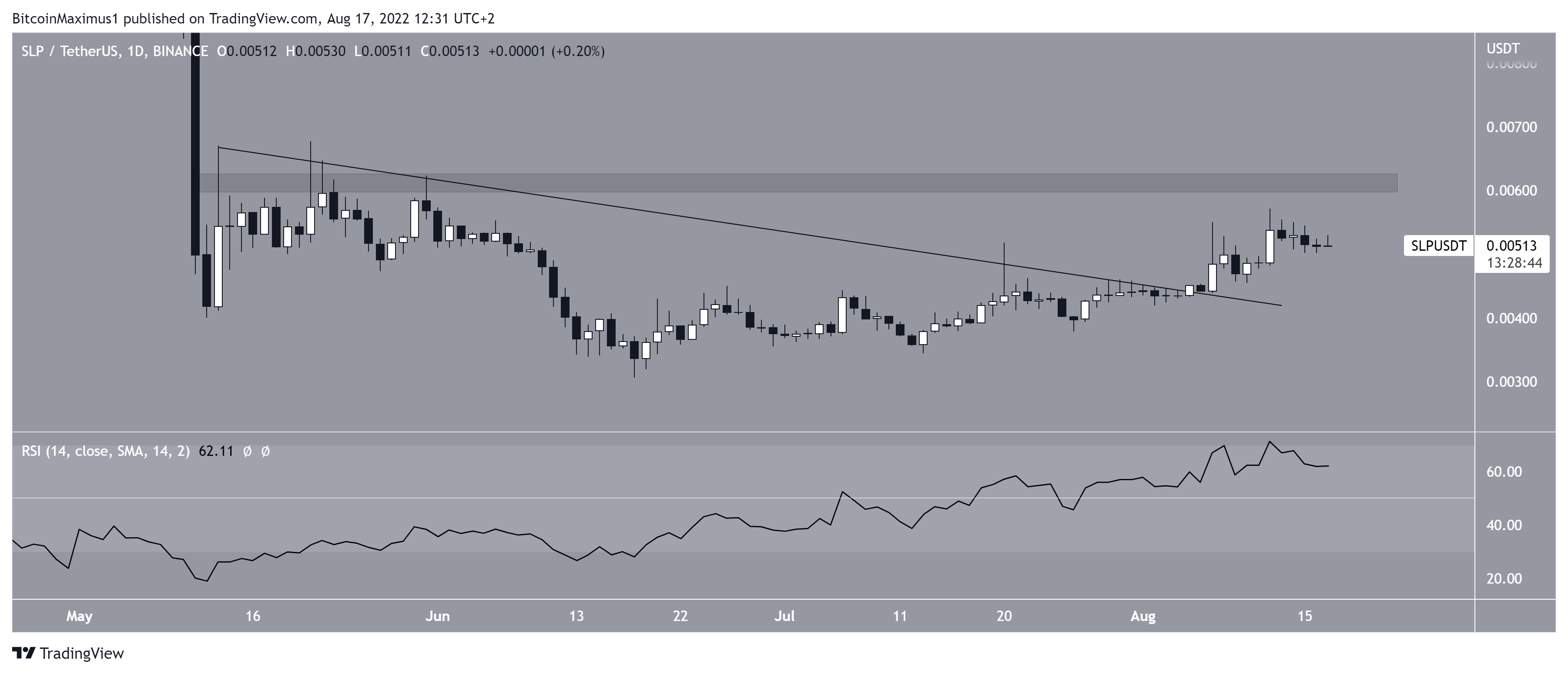 O analista técnico @_Mayb3e twittou um gráfico para o SLP que mostra um rompimento feito no curto prazo.