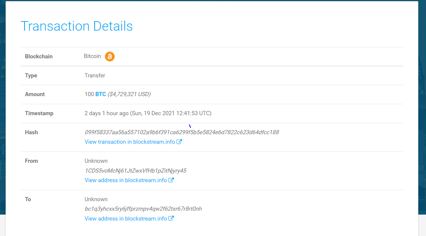 SponsoredApós essa transação de 100 BTC, o dono da carteira começou várias transferências para outra carteira até zerar o saldo.