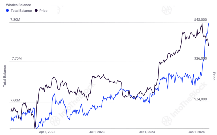 As baleias acumularam US$ 3 bilhões em Bitcoin (BTC) à medida que a atenção da indústria se concentrava no lançamento de vários fundos negociados em bolsa (ETFs) da criptomoeda à vista.