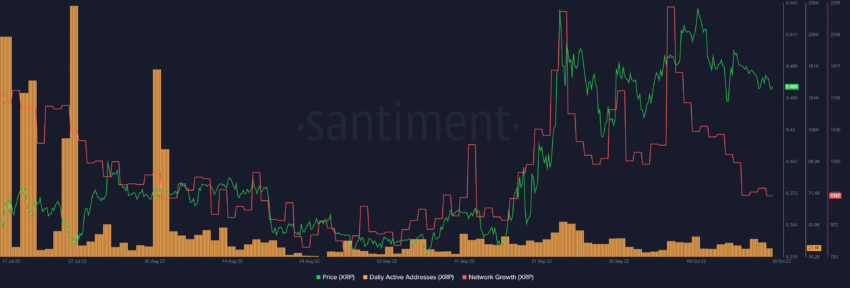Caso isso ocorra, a próxima resistência de preço seria encontrada em US$ 0,50 e US$ 0,60. No entanto, não há crescimento notável nos endereços ativos diários de XRP. Esse comportamento de mercado sugere uma falta de participantes em meio à confusão decorrente do julgamento da Ripple.