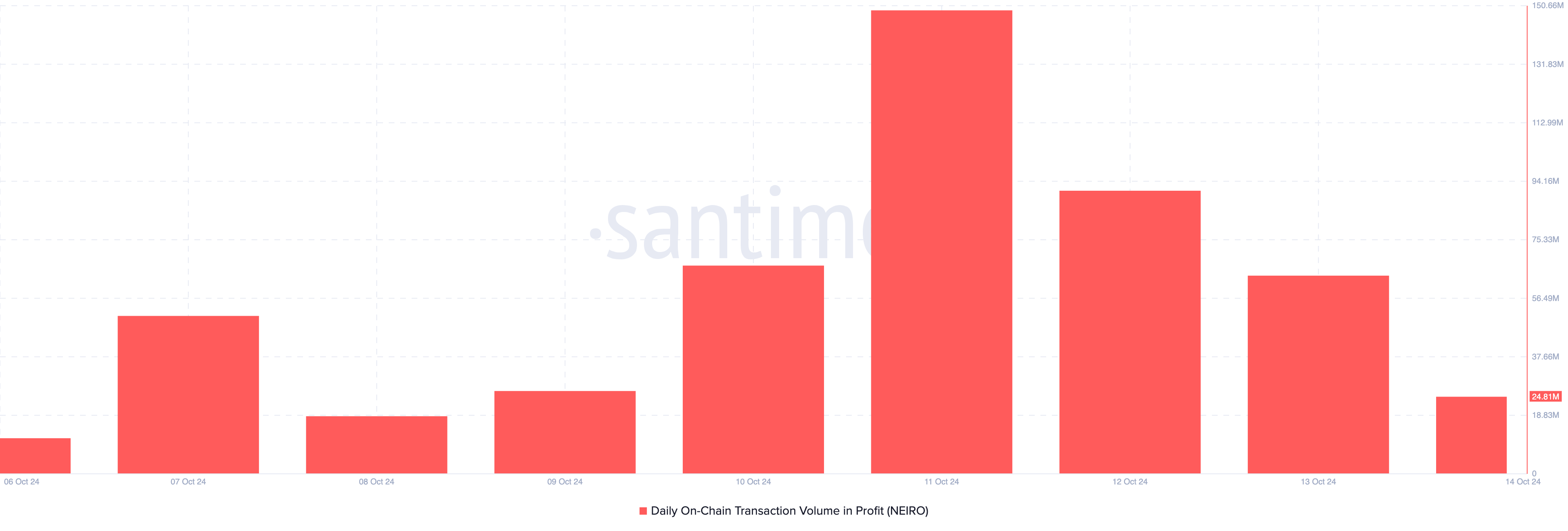 Essa queda consistente na realização de lucros sugere que os detentores de NEIRO preferem ser mãos de diamante, mantendo a memecoin em vez de vendê-la para ganhos de curto prazo.