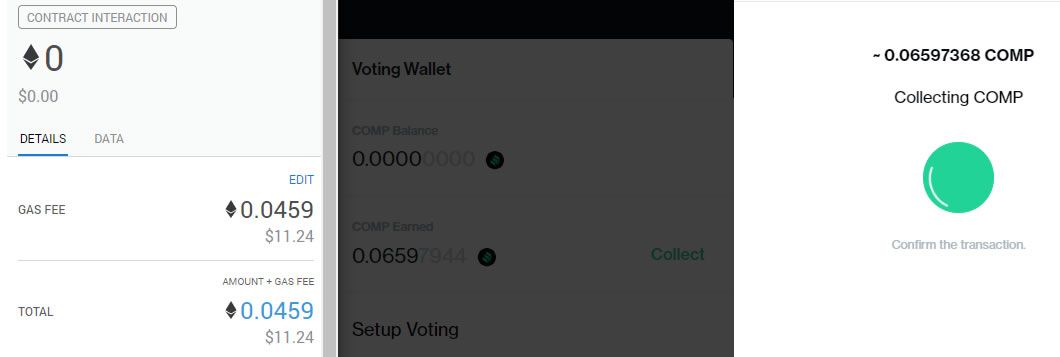 Neste exemplo, o BeInCrypto demonstra como coletar apenas US $ 15,5 em COMP, acumulados em pouco menos de uma semana com US $ 9.000 em garantia de ativos digitais depositados, custaria US $ 11,24 em Gas. Retirar 20 ETH da Compound depois de uma semana sem fazer nada custará US $ 2 em taxas Gas.