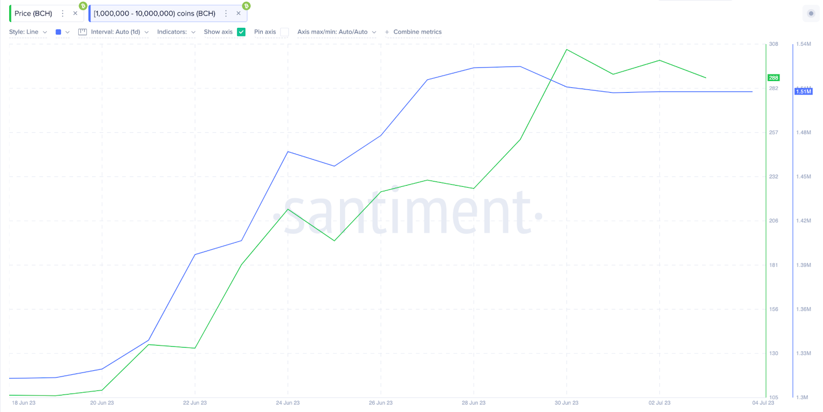 Depois de disparar mais de 100% em junho, o Bitcoin Cash (BCH) começou julho com uma correção de preço de 13%. Dados on-chain mostram que as baleias agora estão deixando de investir no ativo. Isso desencadeará uma grande retração em direção a US$ 250?