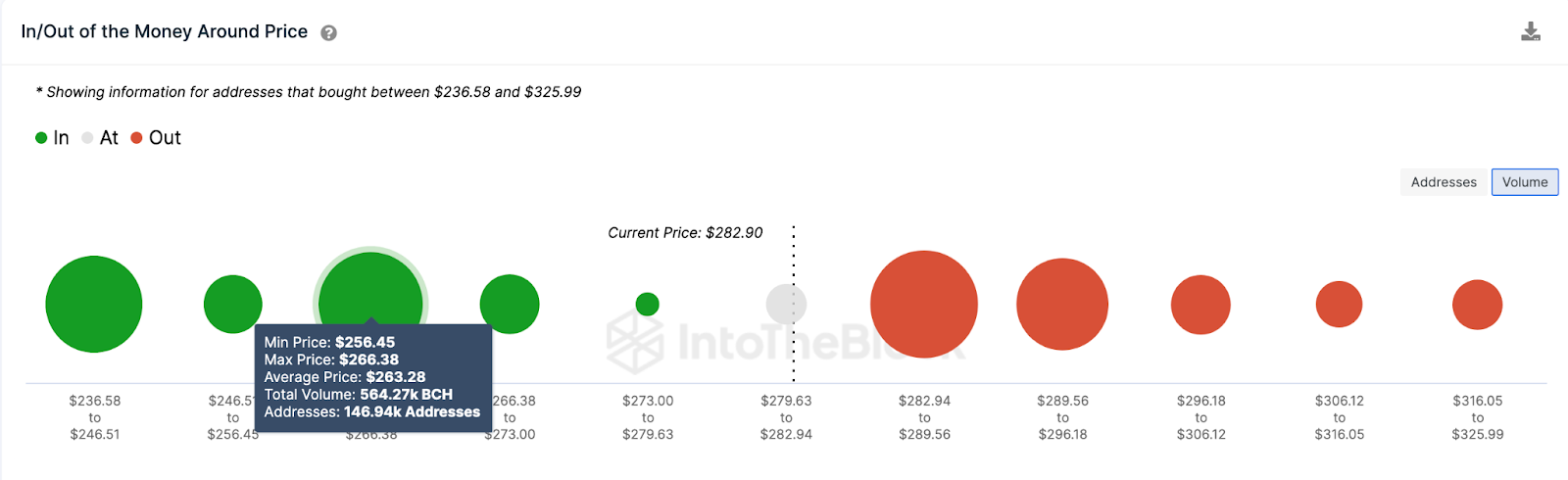 Dados os fatores mencionados acima, as baleias podem forçar uma retração abaixo de US$ 250 se ficarem pessimistas. No entanto, os compradores oferecerão algum suporte em torno de US$ 265. Nessa zona, 147.000 investidores que compraram 564.000 BCH ao preço máximo de US$ 267 poderiam evitar a queda.
