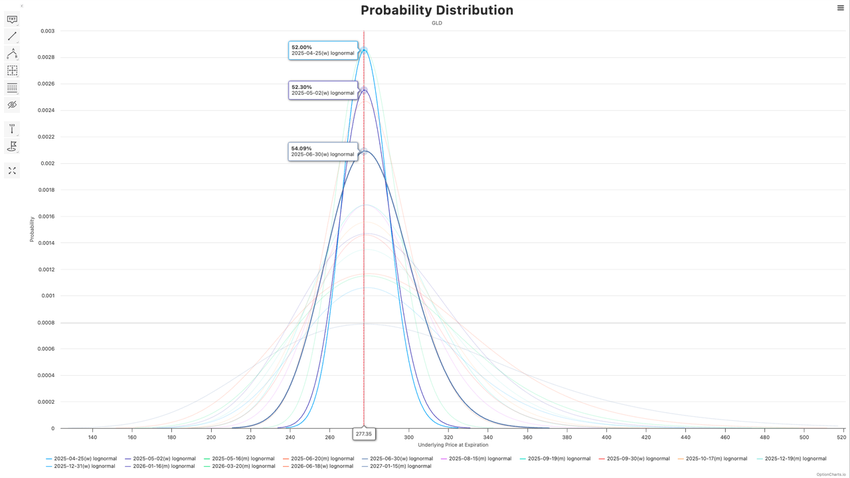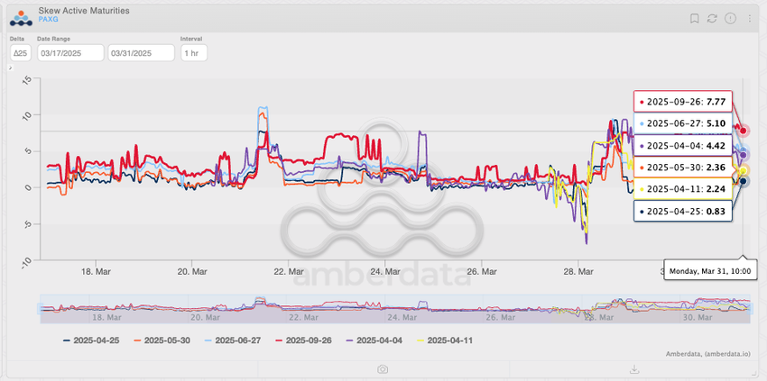 No mercado de derivativos, os traders esperam o mesmo. A distribuição de probabilidade implícita do GLD mostra que a probabilidade de novos aumentos no preço do ouro nos próximos meses é superior a 52%, e a probabilidade aumenta gradualmente ao longo do tempo. No mercado de cripto, as opções de PAXG, o token proxy do ouro, mostram um padrão totalmente otimista do curto ao longo prazo, o que não é encontrado em outros ativos subjacentes de cripto. Seja de uma perspectiva fundamental ou de expectativa, o ouro ainda é um dos melhores ativos subjacentes de investimento atualmente. O ouro é o Ás.