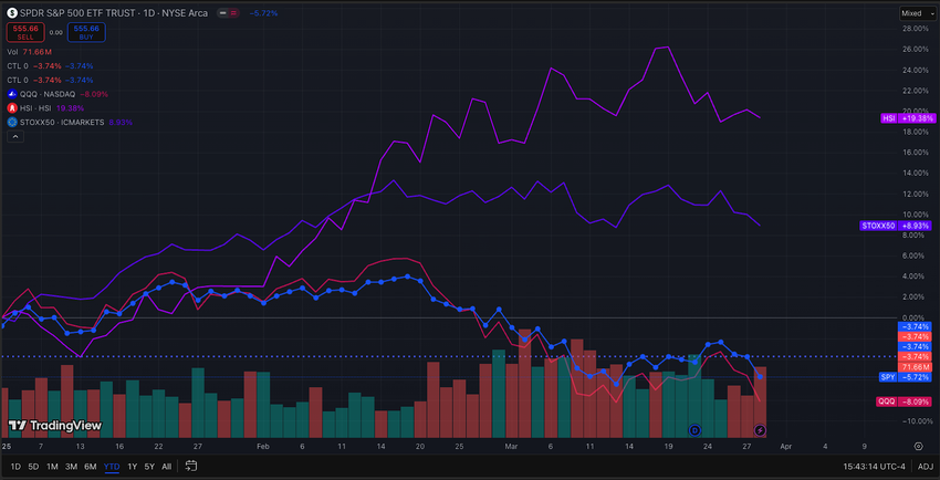 Como resultado, uma cena rara apareceu nos mercados globais por muitos anos: o dólar americano, as ações dos EUA e os rendimentos dos títulos do tesouro dos EUA caíram simultaneamente. Ao mesmo tempo, os preços do ouro e da prata oscilaram para cima, acompanhados por um aumento acentuado nas ações da UE e de HK após vários anos de desempenho medíocre.