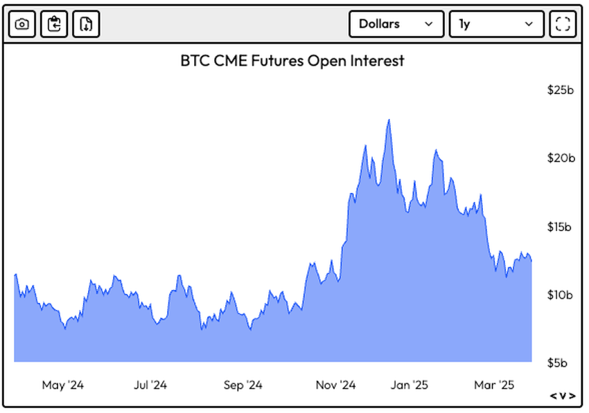 No pico, o interesse em aberto dos futuros de BTC na CME ultrapassou 20 bilhões de dólares. À medida que o carry trade de cripto foi desfeito, o interesse em aberto caiu mais de 40%. Fonte: Velodata