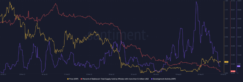 A atividade de desenvolvimento de XRP também teve uma tendência mais baixa e atingiu mínimas desde 14 de setembro, em forte tendência de baixa. A atividade de desenvolvimento está em seus níveis mais baixos desde julho. O famoso analista Il Capo da Crypto previu uma queda para US$ 0,14 no preço do XRP.