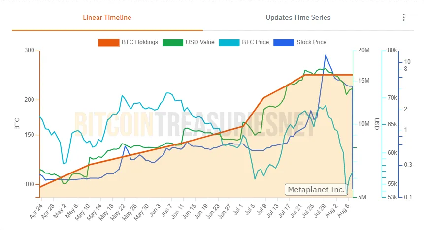 No último desenvolvimento, em 6 de agosto, a empresa revelou seu plano de emitir direitos de aquisição de ações gratuitas para levantar 10,08 bilhões de JPY (cerca de US$ 70 milhões). Essa iniciativa permite que todos os acionistas ordinários comprem ações da Metaplanet de 6 de setembro a 15 de outubro a um preço predeterminado, de acordo com a décima primeira série de direitos de aquisição de ações da empresa.