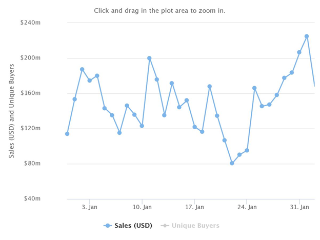 Com um número insignificante de compradores únicos e total de transações nos primeiros 39 meses de sua existência, o projeto de colecionáveis digitais finalmente viu 292 compradores únicos, correspondendo a 2.079 transações totais. O valor médio de venda ultrapassou US$ 1.000 pela primeira vez em setembro de 2020 e acabou chegando a US$ 1.424.