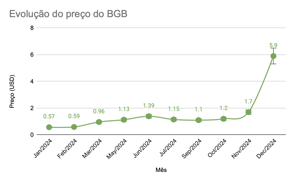 O ano de 2024 foi espetacular para o BGB, o token nativo da Bitget, que experimentou um crescimento explosivo, com um aumento de 900% em seu preço, passando de $0,57 em 1º de janeiro para $5,90 no fechamento de 31 de dezembro. Quatro dias antes, em 27 de dezembro, o BGB alcançou seu recorde histórico (all time high) de $8,48. A empresa agora está com uma promoção para novos usuários, que podem ganhar até 5 BGB sem fazer muito esforço. Detalhes abaixo.