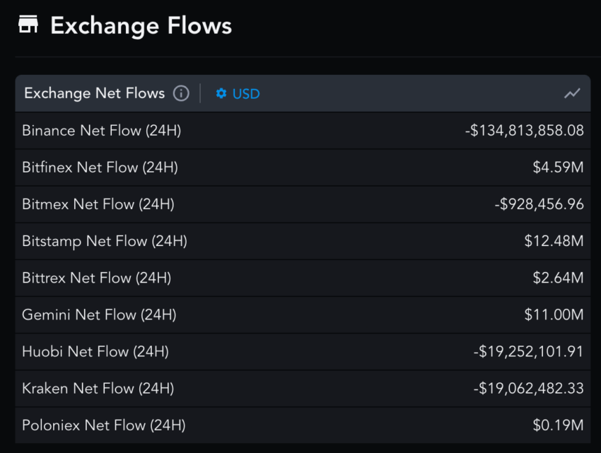 Ao mesmo tempo em que a Binance teve fluxos líquidos negativos nas últimas 24 horas, alguns de seus concorrentes apresentaram o resultado inverso. A Bitstamp, por exemplo, recebeu depósitos de US$ 12,48 milhões, enquanto outros US$ 11 milhões foram depositados na Gemini.