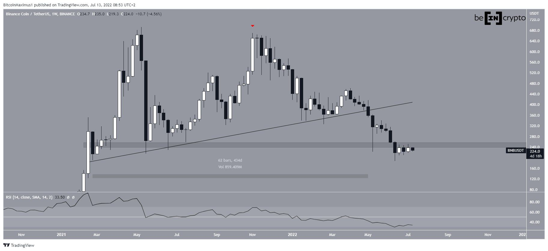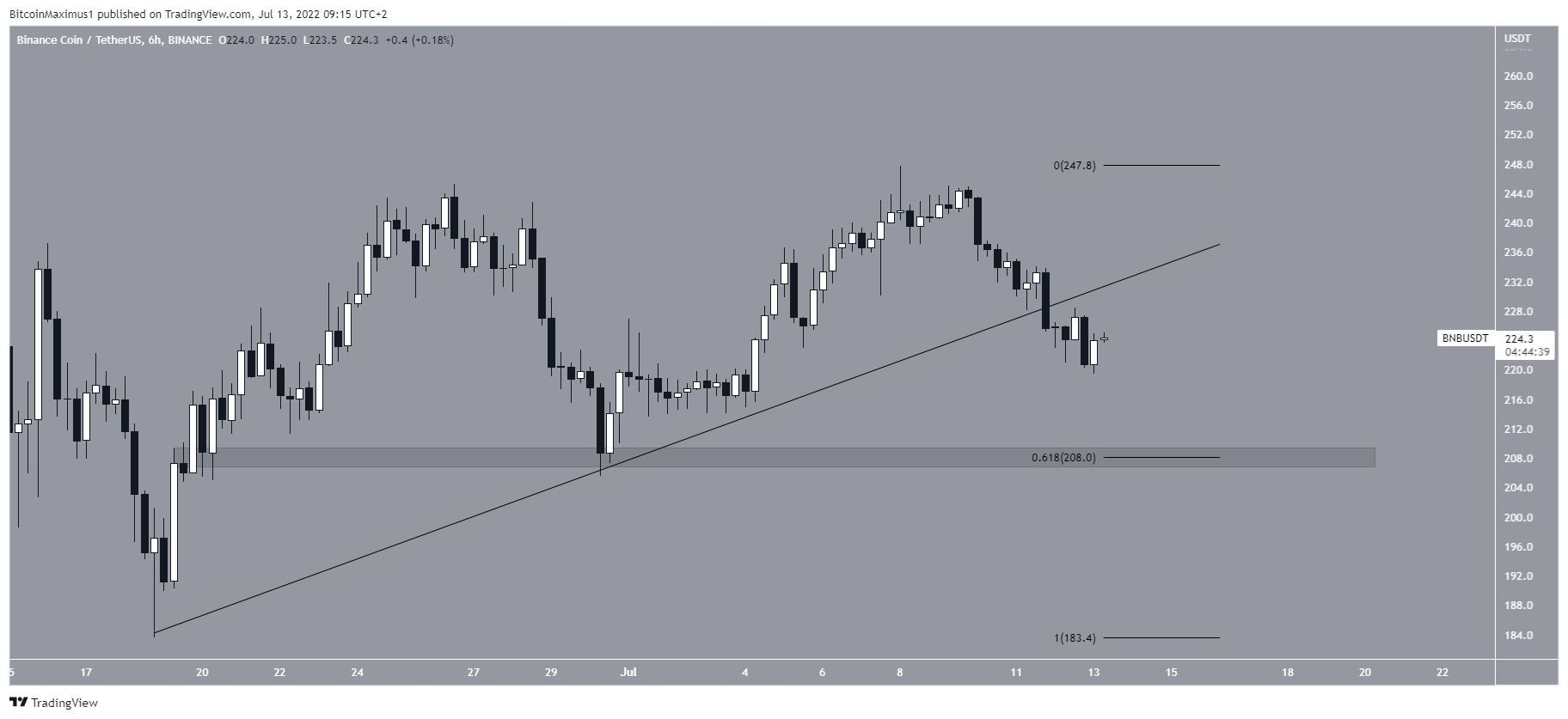 Portanto, a BNB foi dividida em um nível de suporte de longo prazo horizontal e diagonal.