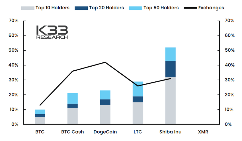 A K33 também descobriu que a longevidade do Ethereum garantiu propriedade diversificada de ETH, com o ativo experimentando os melhores níveis de inflação. A Solana, por outro lado, tem propriedade concentrada e o segundo melhor nível de inflação.