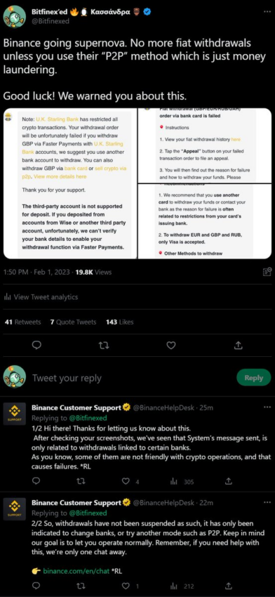 Um usuário do Reddit que atende pelo identificador u/minghuaa foi um dos primeiros a denunciar a exchange. Em um tópico do Reddit, o usuário escreveu que a Binance arruinou sua vida depois que ele não conseguiu sacar suas economias por meio do mercado P2P da Binance. Apesar de ter sido verificado, a equipe de suporte ao cliente da Binance alegou que ‘os fundos do comprador foram roubados e cancelaram a transação’.