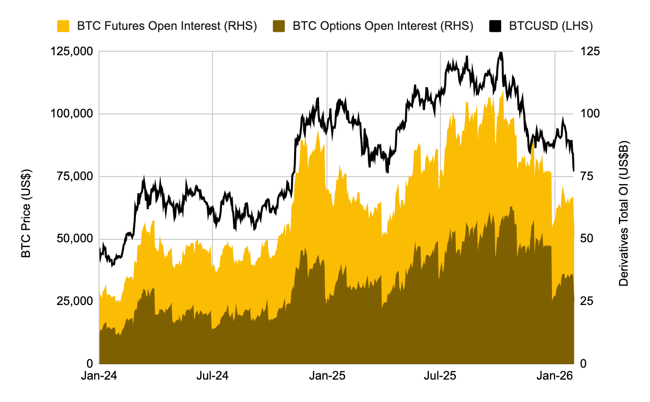 Sponsored SponsoredO volume de contratos em aberto de derivativos havia caído drasticamente. Passou de aproximadamente US$ 76 bilhões para aproximadamente US$ 52 bilhões devido ao vencimento de grandes contratos no final do ano. Isso contribuiu para a recuperação no início de 2026, à medida que os investidores reconstruíam sua alavancagem.