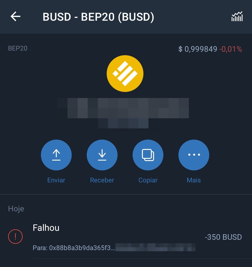 SponsoredEm testes conduzidos pelo BeinCrypto na TrustWallet, transações com diversos valores em BUSD utilizando a Binance Smart Chain não obtinham nenhuma confirmação da rede, causando erros nas transações. Especialistas ouvidos pela reportagem confirmaram a falha generalizada no sistema e aconselharam os usuários a evitar o uso da BSC até que o sistema volte a ficar estável.