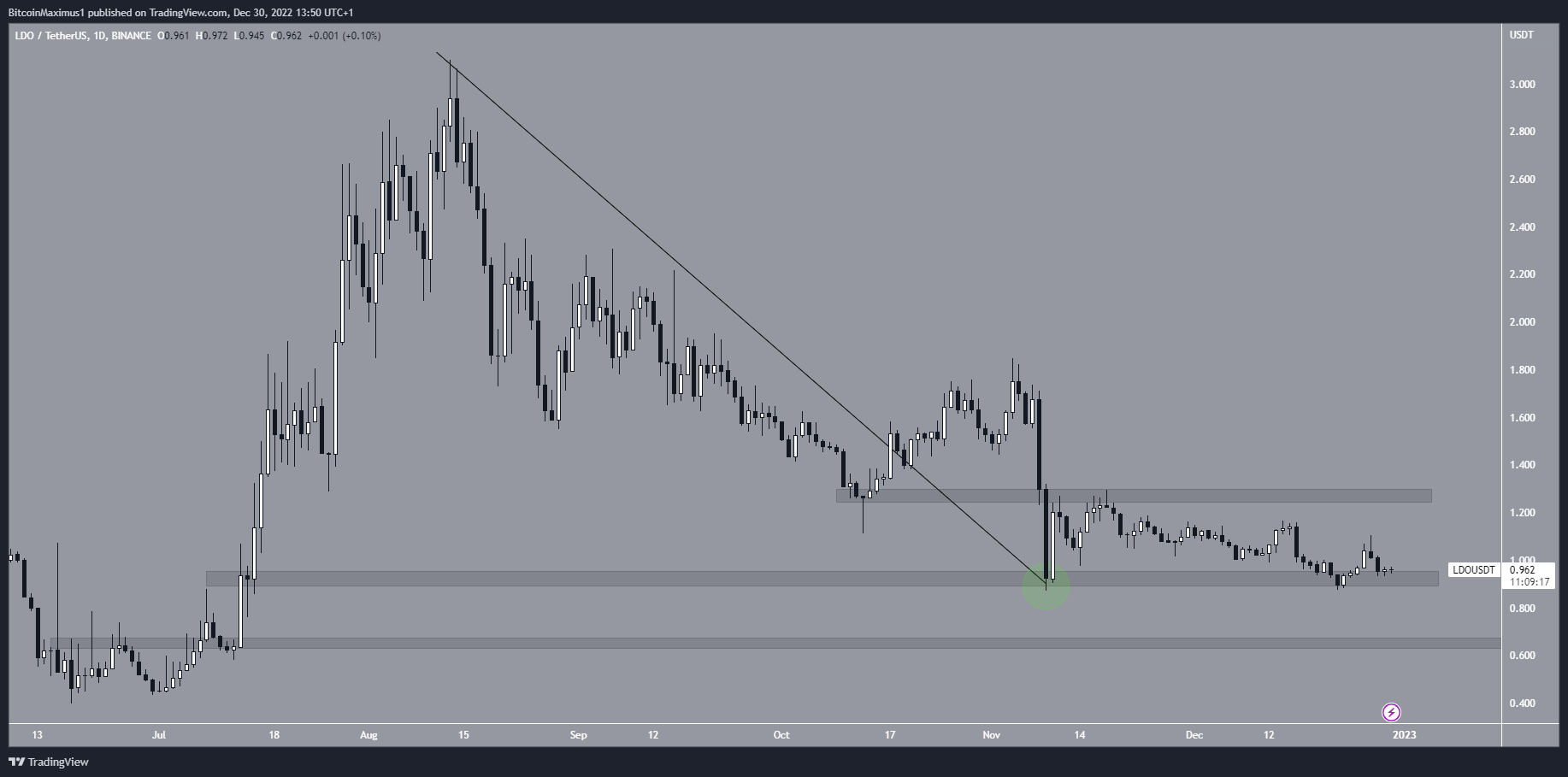 O LDO rompeu uma linha de tendência de baixa em 17 de outubro. No entanto, o movimento de alta não se sustentou e o LDO caiu logo em seguida, validando a linha como suporte em 9 de novembro (círculo verde).