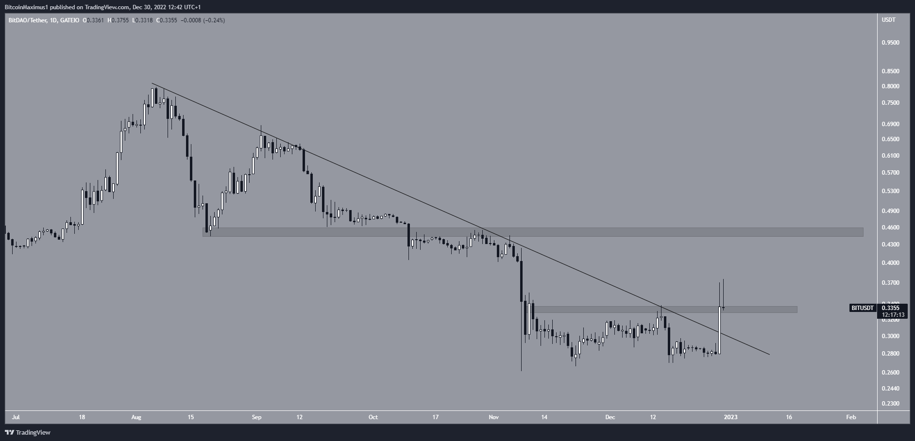 Se for bem-sucedido, poderá subir para a próxima resistência em US$ 0,45. Por outro lado, uma falha pode levar o BIT de volta a uma nova mínima anual.