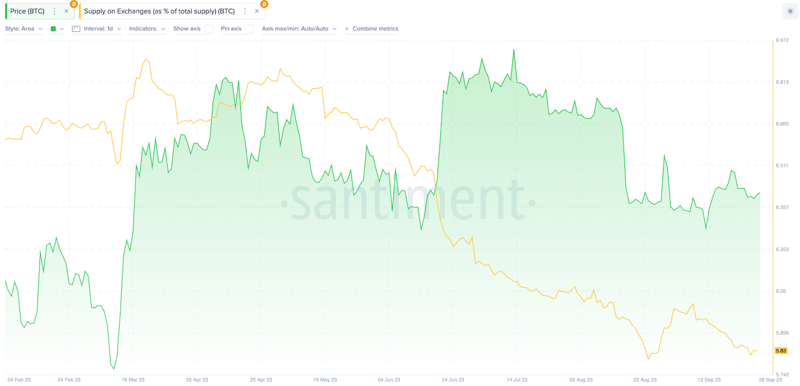 A análise on-chain examina como o recente declínio na oferta de BTC nas exchanges poderia impactar os preços do Bitcoin em outubro de 2023 e além.