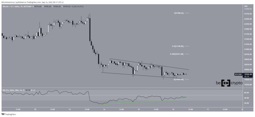 O preço do BTC vem caindo desde que atingiu um topo de US$ 22.781 na última terça-feira (13). O movimento de queda até agora levou a uma mínima de US$ 19.500 feita dois dias depois.