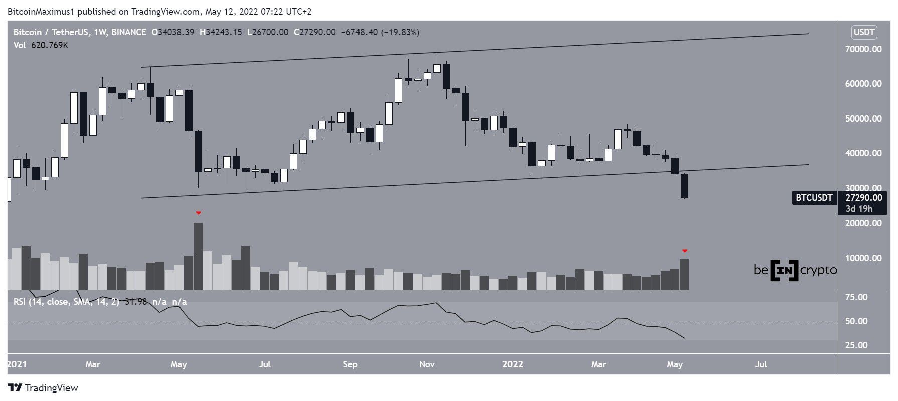 O preço do Bitcoin (BTC) caiu acentuadamente, atingindo a mínima de US$ 26.700 nas últimas 24 horas. Este é o preço mais baixo visto desde dezembro de 2020.