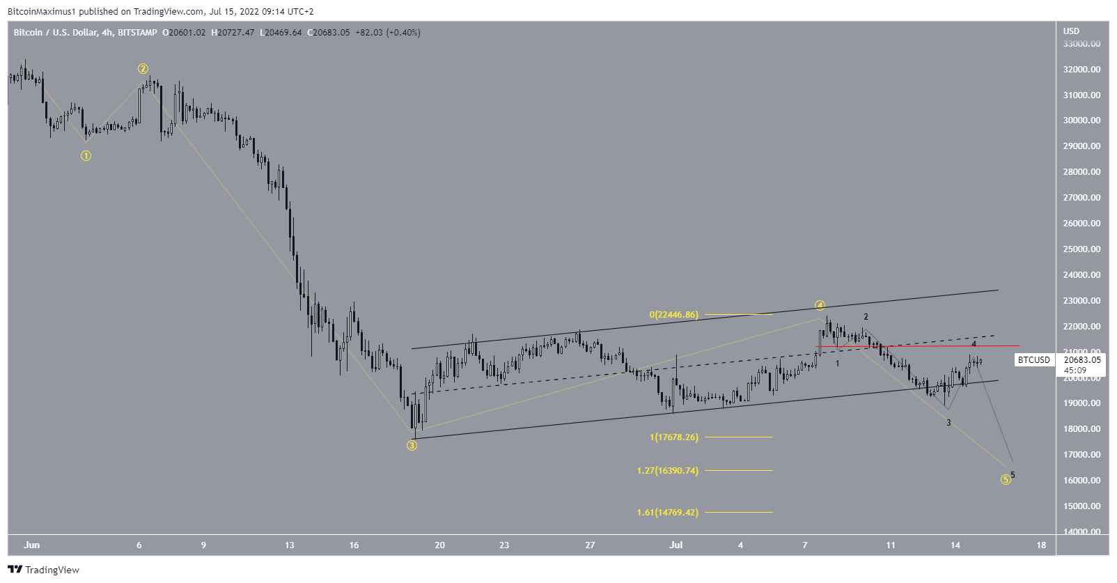A contagem de ondas de longo prazo sugere que um fundo de preço do Bitcoin será alcançado em breve. Quanto à contagem de curto prazo, existem duas possibilidades principais.