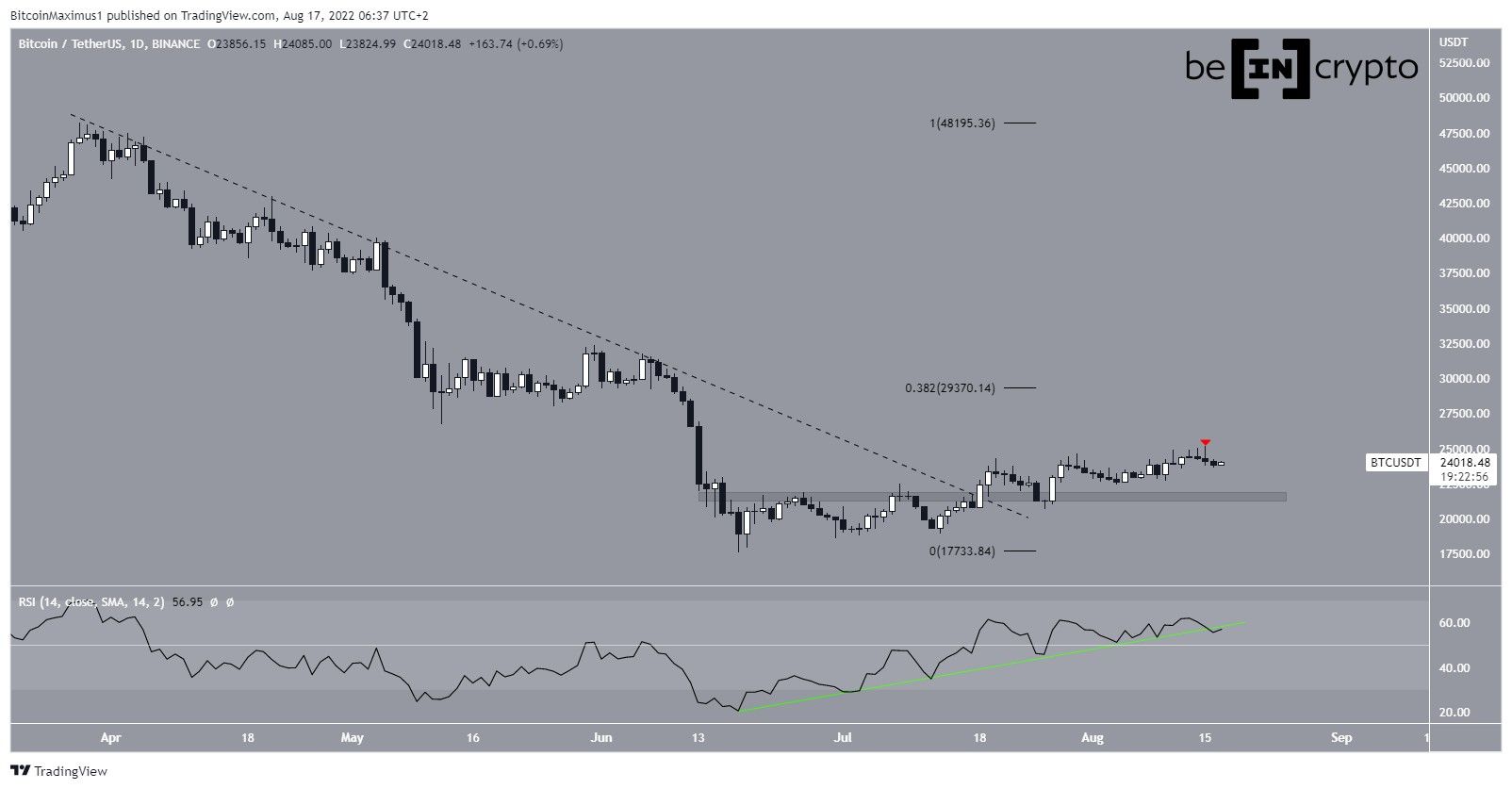 SponsoredSe cair abaixo da linha de tendência de alta de curto prazo (tracejada), seria esperada uma queda em direção à área de suporte de US$ 21.500 mencionada acima. Esta área também coincide com a linha de suporte do canal.