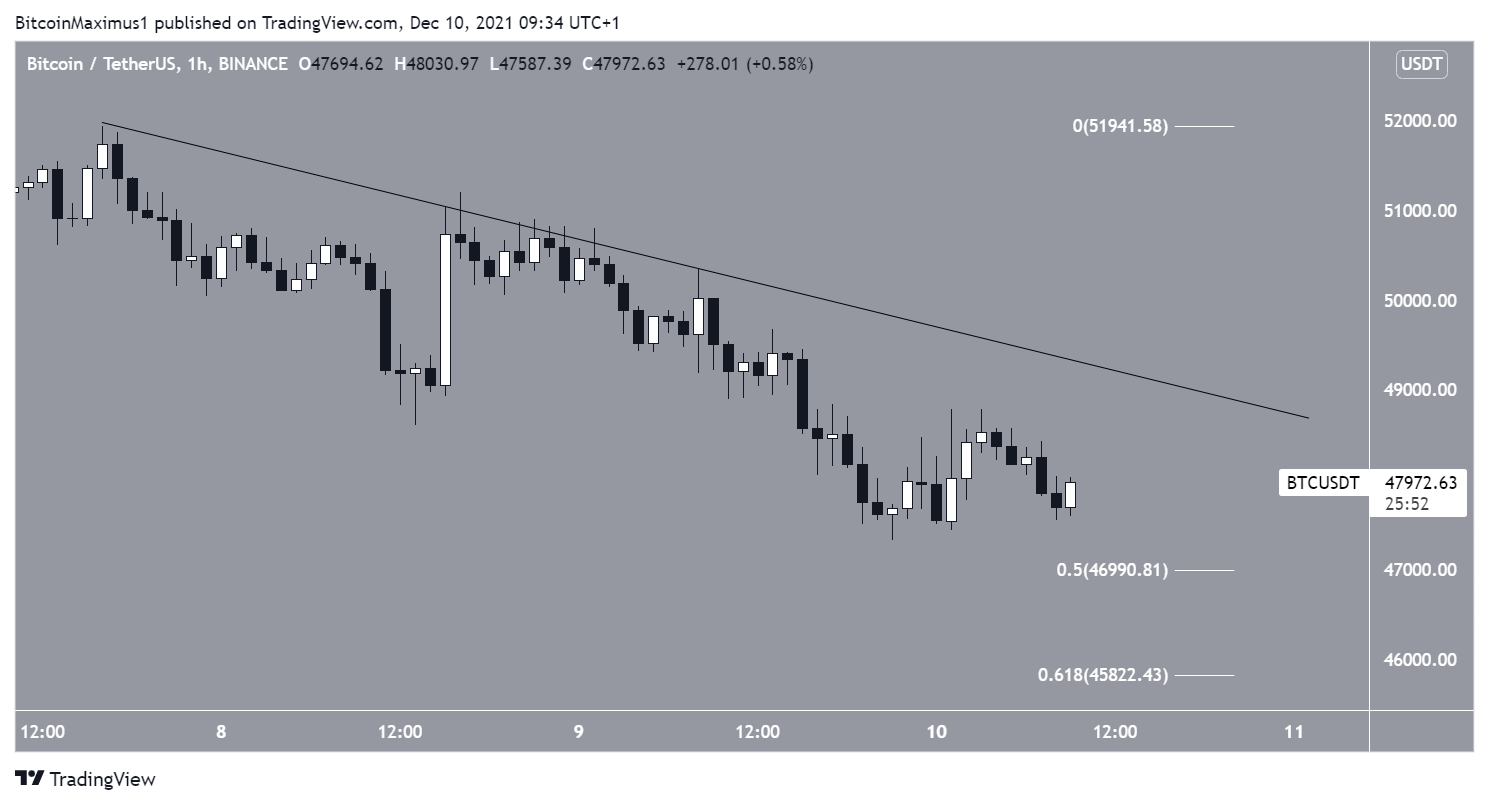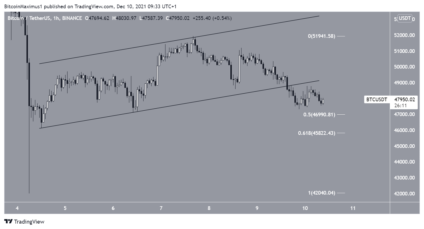 O gráfico de uma hora mostra que o Bitcoin rompeu abaixo de um canal paralelo de alta na quinta-feira. Ele continuou a cair até atingir a mínima de US$ 47.320, logo acima do nível de retração de 0,5 de Fibonacci em US$ 47.000.