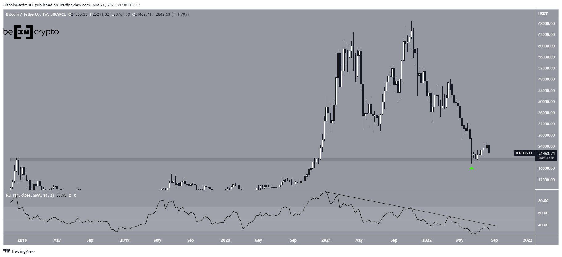 O Bitcoin vem caindo desde que atingiu seu preço mais alto de todos os tempos de US$ 69.000 em novembro de 2021. O movimento até agora levou a uma mínima local de US$ 17.622 que foi feita em junho de 2022.