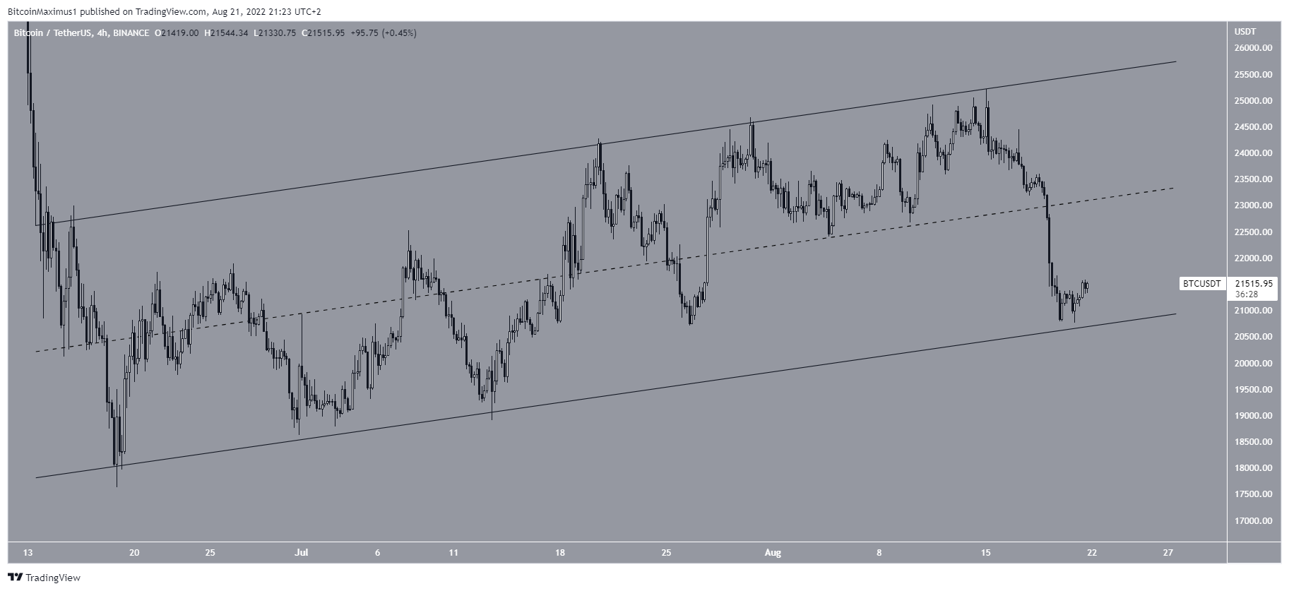 Por fim, o Bitcoin está atualmente na parte inferior do canal, concedendo legitimidade à possibilidade de que o preço saia dele. Se isso ocorrer, seu preço provavelmente cairá para novas mínimas.