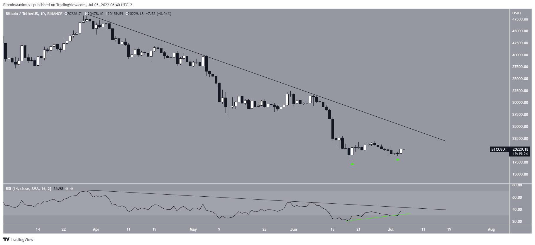 O Bitcoin (BTC) criou um padrão de alta e seu primeiro fundo mais alto que o anterior desde 18 de junho. Porém, o RSI diário ainda não confirmou a reversão para uma tendência de alta.