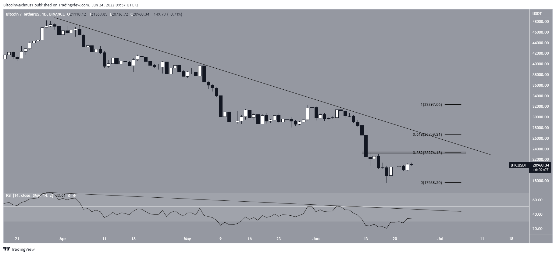 Se isso acontecer, os níveis de resistência mais próximos são encontrados em US$ 23.275 e US$ 26.750. Estes são os níveis de retração de 0,382 e 0,618 de Fibonacci, respectivamente.
