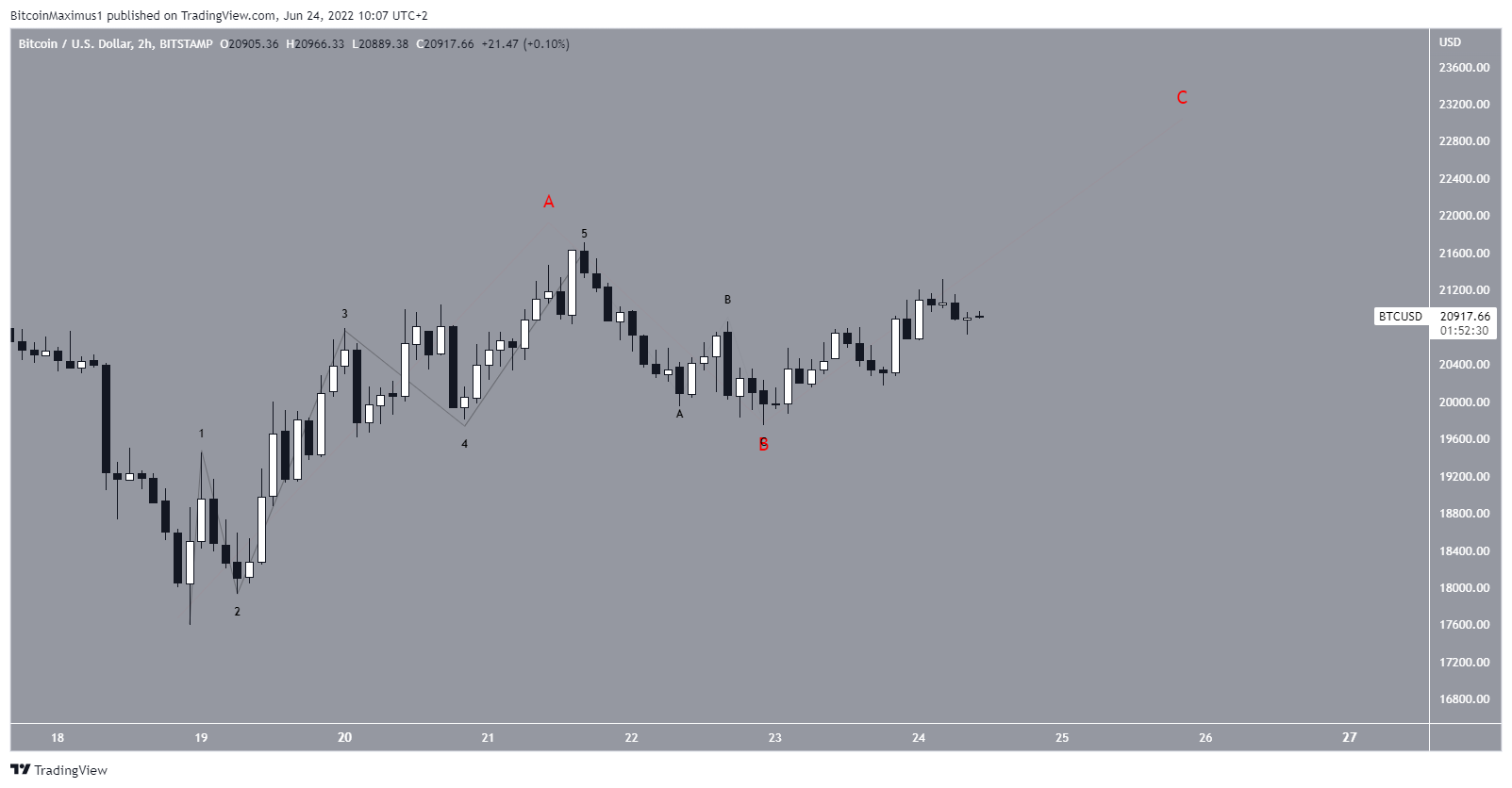 Após a conclusão da correção, seria esperado outro movimento em direção a US$ 23.250. A forma do movimento dirá se ele é um novo salto de alta ou apenas uma correção da queda anterior (vermelho).