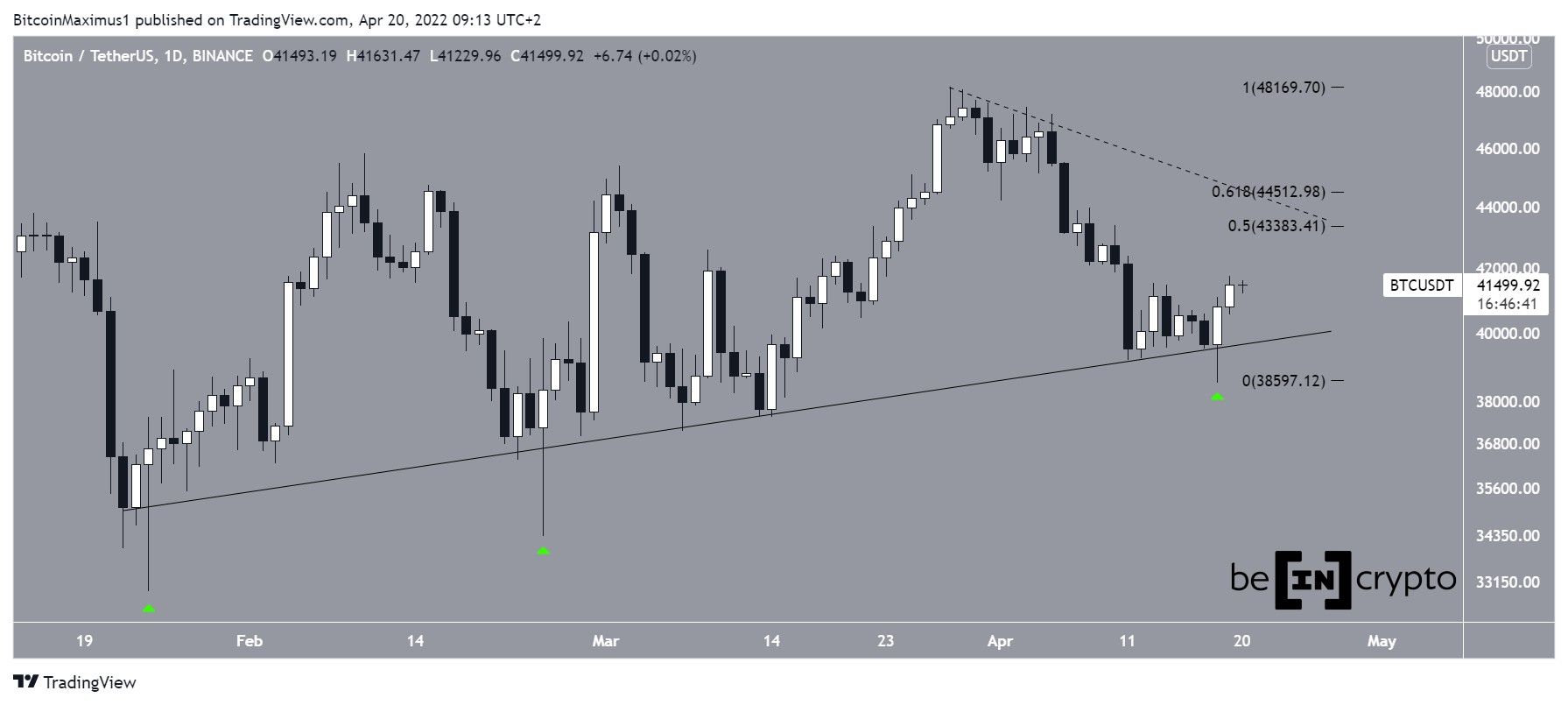 Depois de criar um candle engolfo de alta na segunda-feira (ícone verde), o Bitcoin retomou sua tendência de alta no dia seguinte, criando um topo em US$ 41.760.
