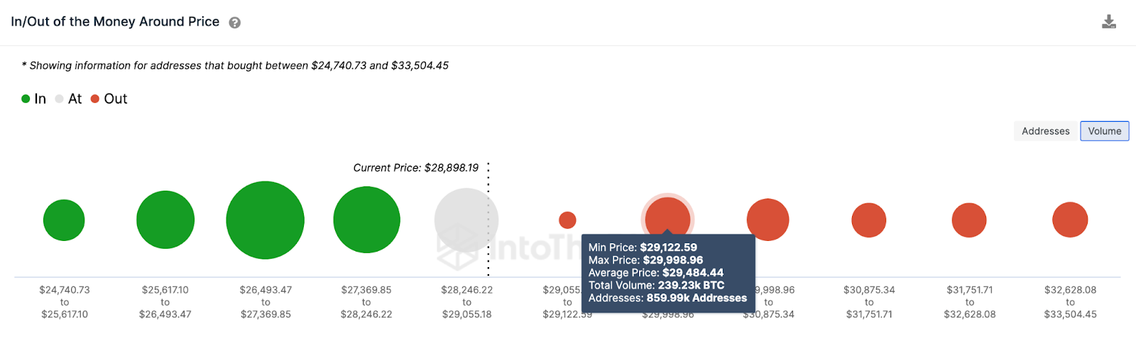 Os dados IOMAP do IntoTheBlock mostram que o preço do BTC estabeleceu um suporte estável acima de US$ 27.000. Enquanto o BTC permanecer acima da faixa de US$ 26.400 a US$ 27.400, há uma boa chance de atingir um novo pico em 2023.