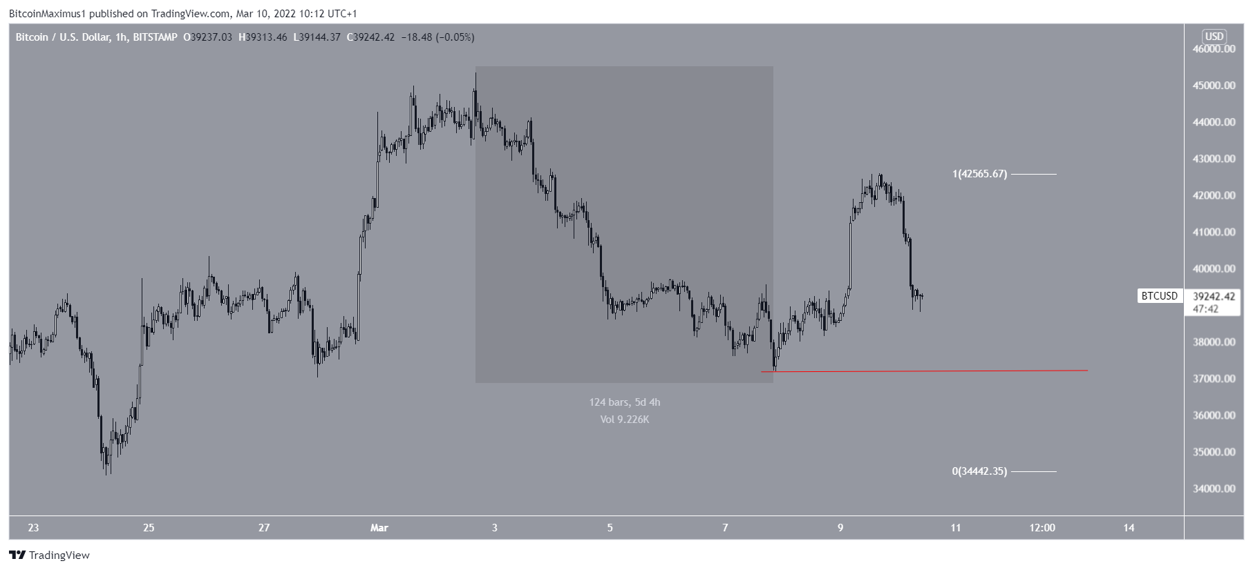 O BTC atingiu um topo no nível de retração de 0,618 de Fibonacci em US$ 42.270. Este é o nível mais comum de Fibonacci, que atua como resistência durante uma retração de preço. Atualmente, o preço da criptomoeda está um pouco acima da área de suporte de US$ 39.050.