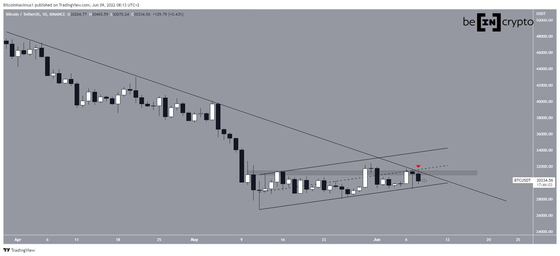 O Bitcoin (BTC) não conseguiu se manter acima de uma confluência de níveis de resistência e criou um candle de baixa que levou seu preço para US$ 30.000.