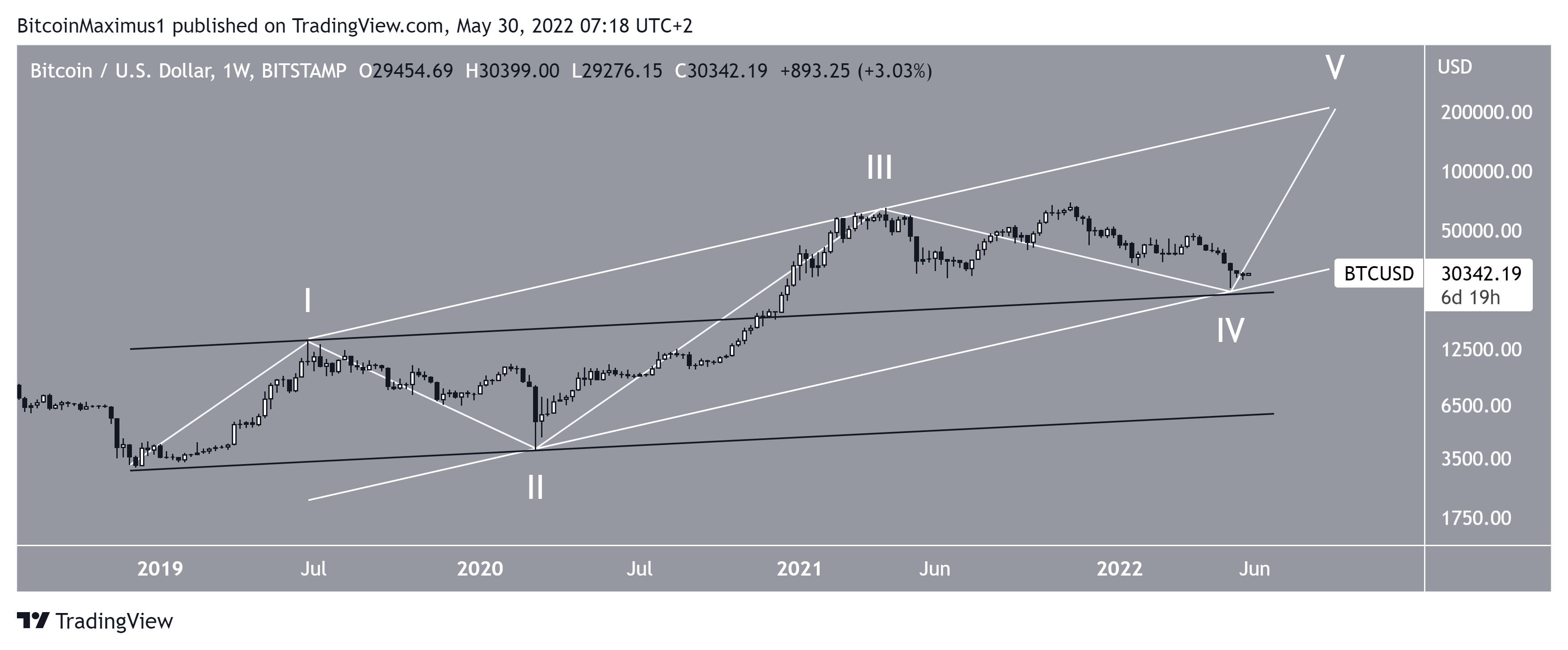 A contagem de longo prazo suporta as leituras do RSI semanal, que sugerem que o Bitcoin está próximo ou já atingiu um fundo do seu movimento de baixa. Isso indica que o preço completou a onda quatro de um movimento de alta de longo prazo de cinco ondas que começou em dezembro de 2018.