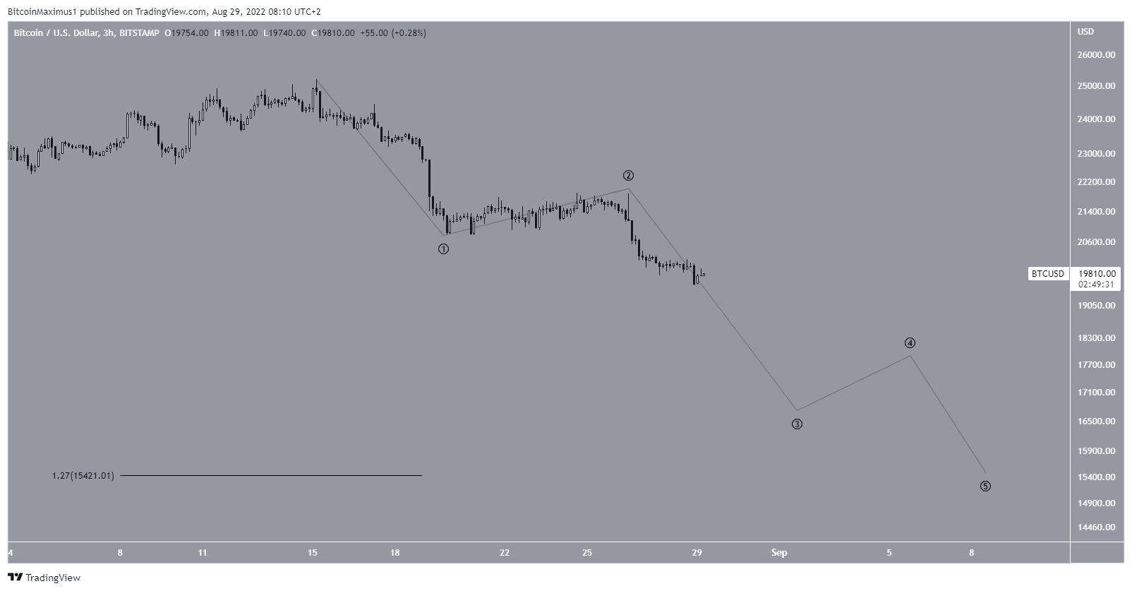 A contagem de curto prazo sugere que o Bitcoin está na sub-onda três da quinta onda. Isso significa que ainda pode haver outro movimento de baixa considerável depois disso.